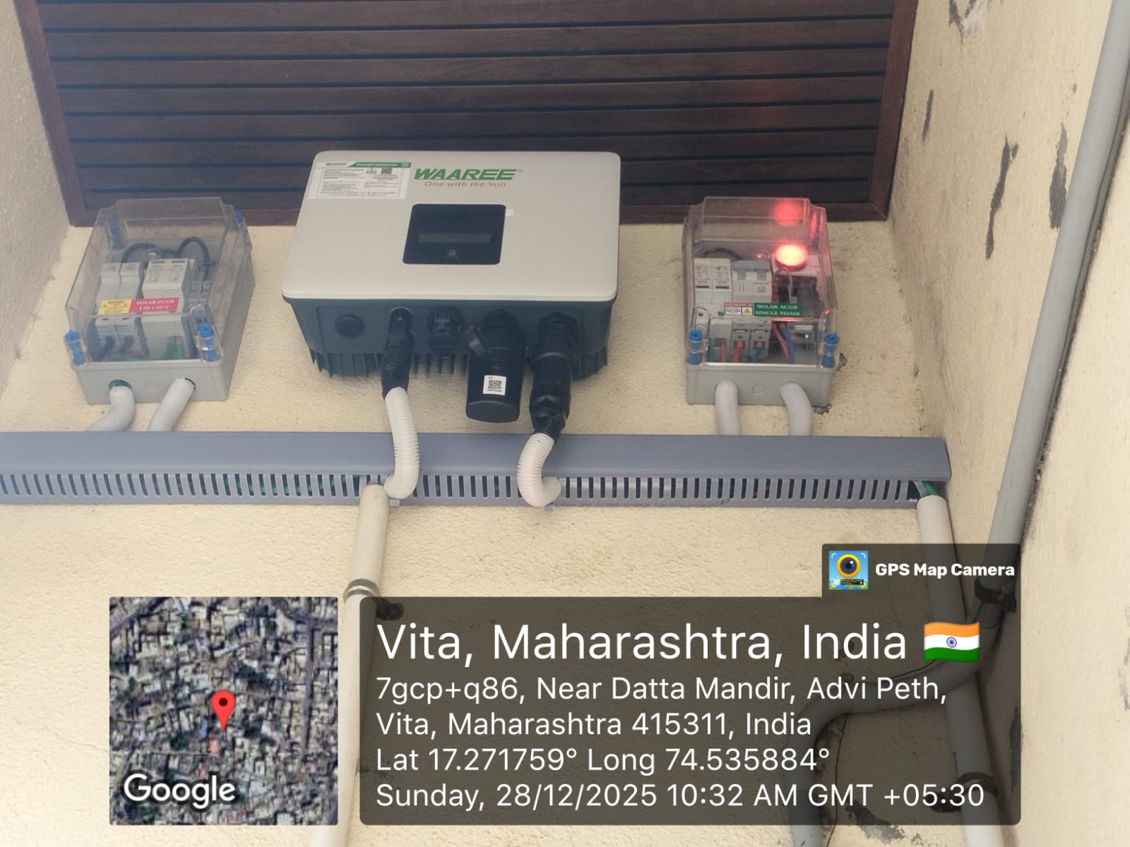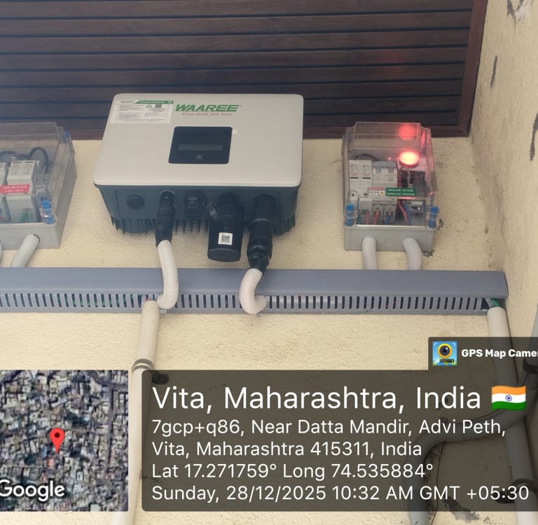 स्पार्क सोलर विटा येथे आम्ही दर्जेदार, कार्यक्षम आणि पर्यावरणपूरक सोलर सोल्युशन्स देण्यासाठी कटिबद्ध आहोत. नुकतेच आम्ही विटा येथे श्री. सुनील गुलवणी यांच्यासाठी 3 kW ऑन-ग्रीड सोलर सिस्टिम यशस्वीपणे कार्यान्वित केली.