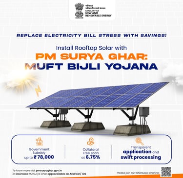 The PM Surya Ghar: Muft Bijli Yojana is a Government of India initiative aimed at promoting rooftop solar installations for residential consumers by providing attractive central subsidies.